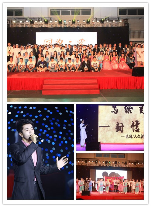 本次慶祝活動以“因為·愛”為主題,通過原創(chuàng)音樂敘事劇的表演形式,分為“耐心的溫度”、“愛心的交響”、“細心的承諾”、“誠心的榮耀”、“責任心的擔當”五個部分,表達了新生的護理力量對職業(yè)精神的理解,展現(xiàn)南丁格爾精神在現(xiàn)代的傳承。高年級學生結(jié)合自己學習經(jīng)歷深情地講述了臨床護理專家用耐心與專業(yè)打動患者,通過改革護理措施與管理模式,為患者搭建嶄新生命通道的感人故事,展現(xiàn)了護理人平凡、樸素但卻無比高尚的夢想,歌頌了護士奉獻的不僅僅是愛與善良,更是專業(yè)、敬業(yè)、精益求精。來自中日友好醫(yī)院的臨床帶教老師和禮儀社的同學們通過傾情的演講和舞蹈展現(xiàn)出護士心中的“信”“望”“愛”。伴隨著悠揚的小提琴獨奏,醫(yī)院工作的真實經(jīng)歷震撼著在場每一位學生的心靈,同學們深深地感到面對脆弱無助的生命,遭受身心痛苦的生命,作為醫(yī)學生,永恒不變的態(tài)度是對生命的敬畏。來自低年級的未來“男丁格爾”們用舞蹈精彩再現(xiàn)手術(shù)室工作場景,演繹了醫(yī)護人員在平凡中堅守對生命的守護,用細心堅守對生命的承諾。來自護理學院的青年教師代表動情地講述了自己成長的心路歷程。她希望同學們要愛專業(yè),更要滿懷著責任心去愛患者,責任高于熱愛。舞蹈團的同學們用一支《生命之魂》表達了她們將用愛與責任去為生命助力,去續(xù)寫護理事業(yè)新的榮耀。當中國人民解放軍第302醫(yī)院的老師講述她們帶著祖國和人民的囑托去塞拉利昂抗擊埃博拉病毒的親身經(jīng)歷時,在場的同學們再一次被中國以負責任的大國形象展現(xiàn)在世界面前所震撼,即將接受燕帽的同學全體起立,向援塞醫(yī)療隊的老師致敬,向祖國致敬。
