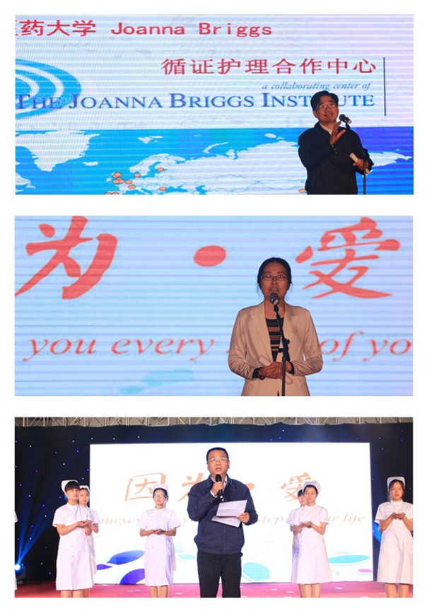 慶祝活動開始之前,校長徐安龍向全場師生宣布了我校近期的兩個喜訊:第一是今年4月下旬加拿大安大略注冊護士協(xié)會在年會上宣布在北京中醫(yī)藥大學成立中國第一家BPSO國際合作中心。第二是5月7日北京中醫(yī)藥大學獲批成為中國大陸第三家循證護理合作中心,即全球第一家從事中醫(yī)護理的循證護理合作中心。徐校長對護理學院取得的喜人成績表示祝賀,并鼓勵學院再接再厲,繼續(xù)深化國際交流與合作,引進國外先進的護理理念,傳播中醫(yī)特色護理,打造國際化教育和科研合作平臺。