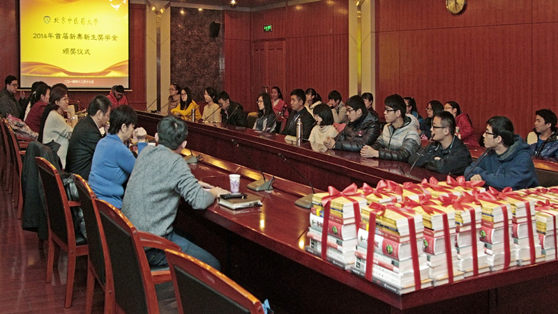 12月14日,我校舉行首屆新奧新生獎學金頒獎儀式。副校長翟雙慶,招生與就業處處長劉雯華、副處長趙建磊、學工部部長杜偉、團委書記傅騫、基礎醫學院副書記范璐、針灸推拿學院副書記侯中偉、中藥學院副書記艾璐、人文學院副書記王良濱,以及來2014級24名獲獎新生參加了會議。會議由劉雯華處長主持。