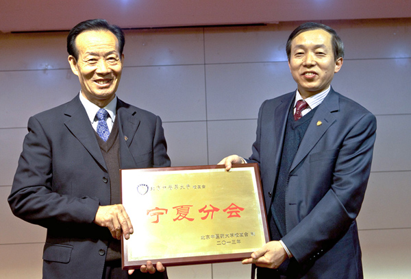 成立會上,我校校友、寧夏醫(yī)科大學副校長牛陽主持會議,并介紹了寧夏分會的籌備過程;全體校友們選舉了會長、副會長、秘書長和常務理事,寧夏衛(wèi)生廳中醫(yī)藥管理局原局長王忠和校友當選為寧夏分會會長。