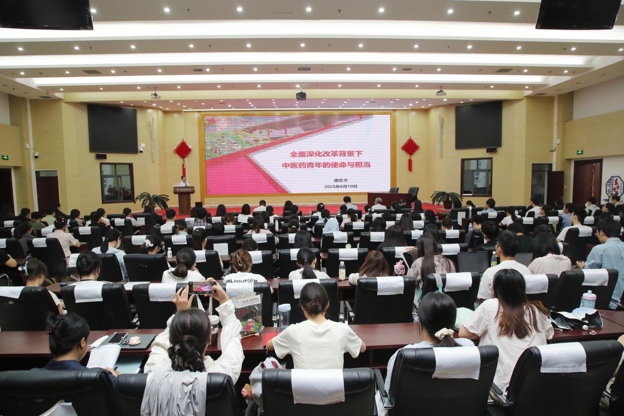 唐志書(shū)校長(zhǎng)的黨課從服務(wù)國(guó)家改革開(kāi)放大局、緊跟中醫(yī)藥事業(yè)改革創(chuàng)新形勢(shì)、落實(shí)北中醫(yī)改革發(fā)展戰(zhàn)略和擔(dān)當(dāng)中醫(yī)藥青年的使命四個(gè)方面,深刻剖析了中醫(yī)藥事業(yè)在新時(shí)代面臨的機(jī)遇與挑戰(zhàn),勉勵(lì)青年學(xué)子勇?lián)厝危詫?shí)際行動(dòng)投身中醫(yī)藥傳承創(chuàng)新發(fā)展偉業(yè)。他強(qiáng)調(diào),青年學(xué)子要做到扎根經(jīng)典,夯實(shí)理論根基;扎根臨床,錘煉實(shí)踐本領(lǐng);扎根基層,服務(wù)健康中國(guó)。更要拓寬國(guó)際視野、講好中醫(yī)藥故事、勇攀科研高峰,主動(dòng)融入國(guó)家發(fā)展大局。他寄語(yǔ)學(xué)生黨員,切實(shí)發(fā)揮先鋒模范作用,勇立時(shí)代潮頭,爭(zhēng)做中醫(yī)藥傳承創(chuàng)新的排頭兵,鼓勵(lì)大家在攀登醫(yī)學(xué)高峰與服務(wù)人民健康的征途上,書(shū)寫(xiě)無(wú)愧于時(shí)代、無(wú)愧于青春的壯麗篇章。