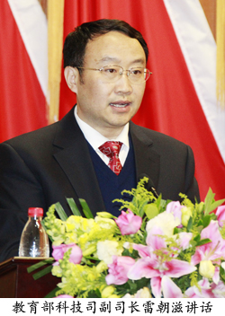 其次,教育部科技司副司長雷朝滋對我校第十三屆學術節的開幕表示祝賀。對我校在科技工作所取得的成績表示肯定。并對我校“十二五”期間的科技工作提出了要求:希望北京中醫藥大學突顯自身優勢,再接再厲,更上一層樓,為人類健康事業做出更大的貢獻。科技部基礎研究司副司長彭以祺、國家中醫藥管理局科技司副司長李昱、國家自然科學基金委員會醫學八處處長王昌恩分別發表講話,祝賀我校第十三屆學術節開幕,王昌恩處長特意題字表示祝賀。