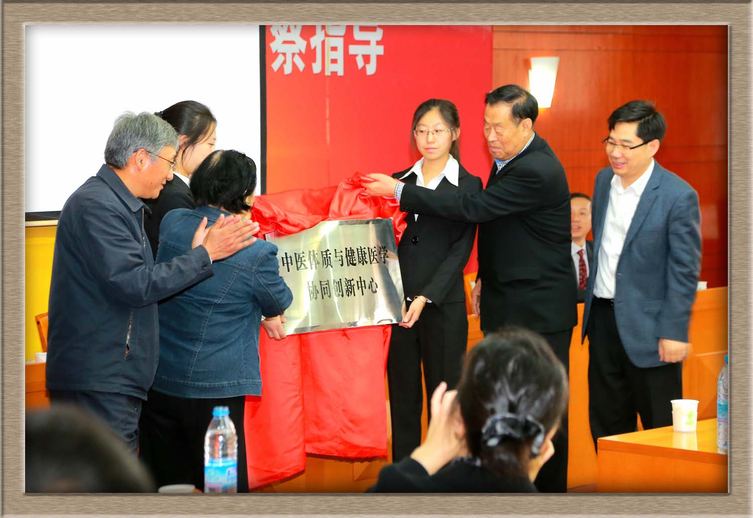 上午9:10,由石學敏院士、黃淑幀教授、吳建偉書記、徐安龍校長為“中醫體質與健康醫學協同創新中心”揭牌,吳建偉書記為王琦教授頒發中心主任聘書,正式宣告“北京中醫藥大學中醫體質與健康醫學協同創新中心”成立。
