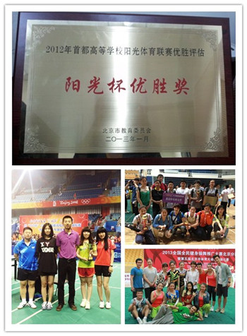 我校運動健兒們的不懈努力、賽場上的堅強拼搏以及教練員的辛勤付出,為學校贏得2012年首都高等學校陽光體育聯賽優勝評估“陽光杯優勝獎”的榮譽。