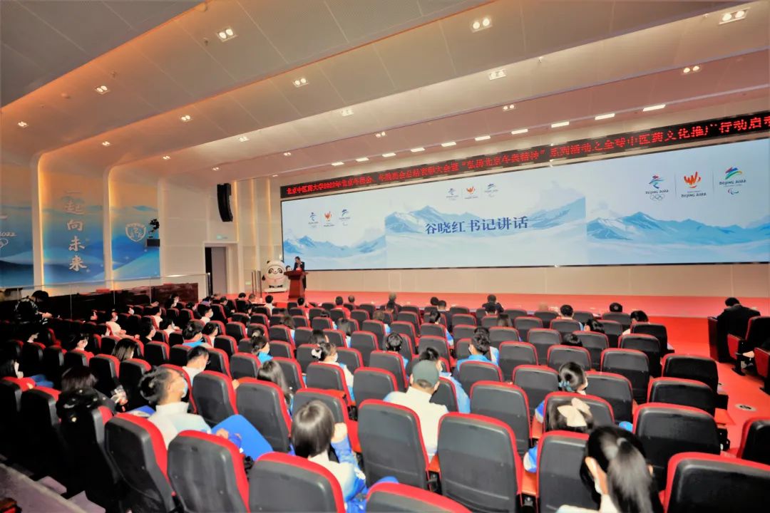 在北京冬奧會和冬殘奧會期間,我校首創的“10秒”中醫藥體驗館是向世界傳播中醫藥文化的一次成功范式,讓全世界看見了中醫之美。會上,與會領導和師生代表們一同上臺,共同啟動“弘揚北京冬奧精神”系列活動之全球中醫藥文化推廣行動。行動將圍繞“四個一”展開:一是“建設一個專家庫”,向世界講授中醫藥文化行動,依托學校雄厚的高端中醫藥人才資源,向世界講述中醫藥故事,提供頂層設計、內容把控和專業醫療服務指導;二是“形成一種新力量”,多維度推廣中醫藥文化行動,充分發揮高校特點,將豐富的優秀青年師生資源納入推廣行動實施體系中,將推廣行動有機地融入到學生社會實踐、志愿服務、創新創業等活動中;三是“構建一種新的體驗場景”,向全球展示線上中醫藥文化行動,打造“10 秒”中醫藥體驗館在后冬奧時代的長效性品牌,并在國內外逐步打造一批融健康養生知識、養生保健體驗、休閑娛樂于一體的中醫藥文化體驗場館;四是“創作一個‘中醫之美’作品矩陣”,向公眾傳播中醫藥文化行動,帶動全民自發擔當中醫藥文化產品的創作者和推廣者,多渠道多方位地向公眾傳播中醫藥文化。