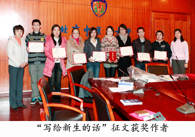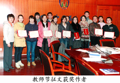 曾鳳部長向獲獎作者頒發了榮譽證書及獎品,并向師生的積極參與表示感謝,向獲獎的作者表示祝賀。她說,教師節征文和“寫給新生的話”征文活動自2009年開展以來,得到了很多老師和同學的大力支持和熱烈響應,今年的活動具有參加人數多、參與層次高、投稿范圍廣、體裁形式多樣的特點。她表示,今后這兩項征文活動將繼續舉辦,成為具有我校特色的校園文化項目,成為傳播正能量、營造和諧氛圍、培養積極心態的重要載體,以進一步增強廣大教師愛崗敬業、教書育人的積極性、主動性和創造性,進一步營造我校學生尊師重教、感念師恩的良好校園氛圍。她希望通過大家的共同努力,為大力弘揚我校人文精神,進一步推動校園文化建設,豐富師生的校園文化生活,增強廣大師生的凝聚力作出貢獻。