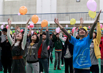 北京陽光勵奇培訓團隊的老師們帶領師生進行了形式新穎的心理素質拓展訓練,開幕式在《真心英雄》手語歌聲中達到了高潮。