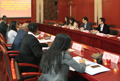 徐安龍校長向南非朋友介紹了我校在中醫藥教育、科研、臨床醫療、國際合作等領域的特色及優勢。Muofhe先生聽后大為贊嘆,表示隨著科學技術的發展,人類的健康訴求日益強烈。傳統醫學對醫學難題的解釋與攻克,發揮著愈來愈大的作用。南非身處非洲大陸,一方面深受艾滋病等傳染病的困擾;另一方面,經濟高速發展改變了人們的生活方式和飲食習慣,糖尿病患者和高危人群數量日益上漲。此次來訪,希望就中醫藥防治艾滋病、糖尿病等與我校展開合作。隨后,南非科技部的相關人員還就中醫藥在海外發展所面臨的挑戰與困難,與我校進行交流。會談結束,雙方一致同意將進一步溝通,促成在以上領域的實質合作。