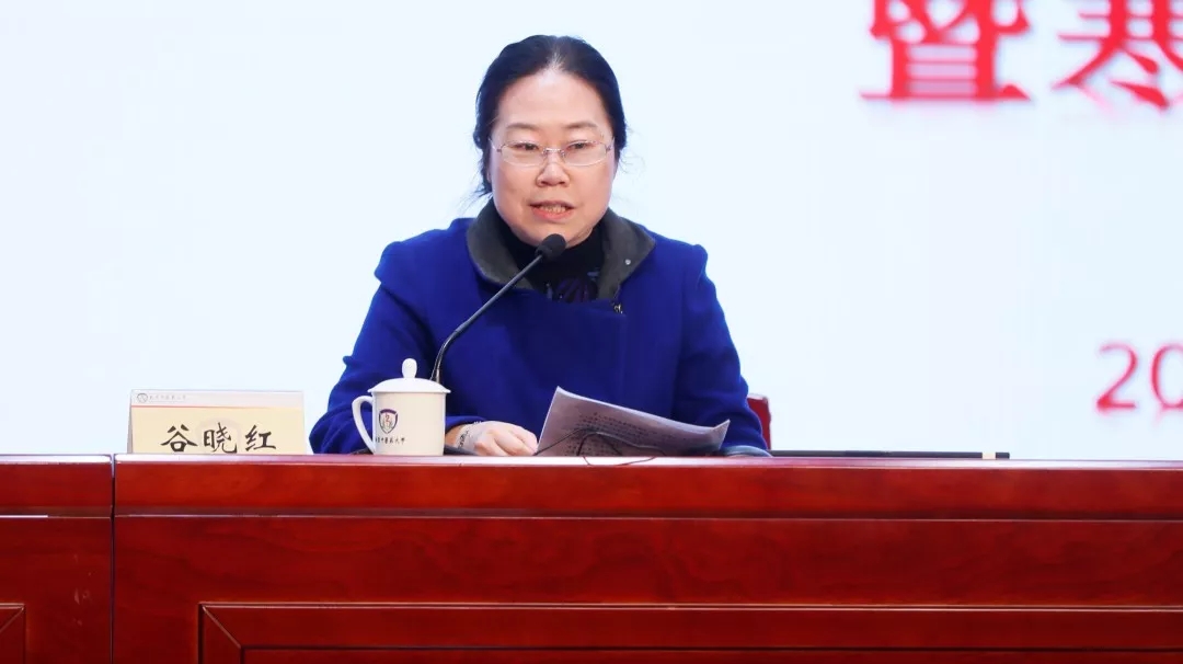 最后,谷曉紅書記作總結講話。谷書記說,2019年,學校走得堅定,過得充實,取得了實實在在的工作效果。成績有目共睹、振奮人心。這些成績的取得,凝聚著全校師生的辛勞和汗水。她代表學校黨委向全體師生員工一年來的辛苦付出表示最誠摯的感謝。