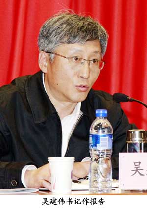 黨委書記吳建偉以《鞏固成果,務(wù)實(shí)創(chuàng)新,為學(xué)校科學(xué)發(fā)展提供堅(jiān)強(qiáng)保障》為題,作了學(xué)校黨建和思想政治工作報(bào)告。報(bào)告總結(jié)了2007年以來學(xué)校黨建和思想政治工作取得的成就,并對(duì)當(dāng)前和今后一個(gè)時(shí)期學(xué)校黨的建設(shè)和思想政治工作提出了三項(xiàng)要求:第一,要統(tǒng)一思想、提高認(rèn)識(shí),增強(qiáng)做好高校黨建工作的緊迫感和責(zé)任感。要把握和用好重大戰(zhàn)略機(jī)遇期,推動(dòng)高等教育科學(xué)發(fā)展,加快建設(shè)中國(guó)特色現(xiàn)代高等教育體系,應(yīng)對(duì)意識(shí)形態(tài)和思想文化領(lǐng)域的新挑戰(zhàn),維護(hù)高校和諧穩(wěn)定的大好局面。第二,要圍繞學(xué)校中心任務(wù)加強(qiáng)黨的建設(shè),為學(xué)校科學(xué)發(fā)展提供堅(jiān)強(qiáng)有力的保障。要堅(jiān)持以社會(huì)主義辦學(xué)方向?yàn)楦尽⒁蕴岣哔|(zhì)量為核心、以改革創(chuàng)新為動(dòng)力、以維護(hù)穩(wěn)定大局為前提、以馬克思主義為主導(dǎo)、以優(yōu)良黨風(fēng)為引領(lǐng)。第三,要貫徹落實(shí)新修訂的《中國(guó)共產(chǎn)黨普通高等學(xué)校基層組織工作條例》,不斷提高學(xué)校黨組織建設(shè)科學(xué)化水平。在推進(jìn)用馬克思主義中國(guó)化最新成果武裝頭腦、指導(dǎo)教學(xué)科研實(shí)踐上、在加強(qiáng)學(xué)校領(lǐng)導(dǎo)班子和干部隊(duì)伍建設(shè)上、在發(fā)揮學(xué)校基層黨組織戰(zhàn)斗堡壘和黨員先鋒模范作用上、在繼續(xù)推進(jìn)創(chuàng)先爭(zhēng)優(yōu)活動(dòng)上、在以優(yōu)良黨風(fēng)促校風(fēng)帶學(xué)風(fēng)上、在加強(qiáng)和改進(jìn)師生員工思想政治教育上、在營(yíng)造學(xué)校改革發(fā)展良好氛圍上取得新成效。