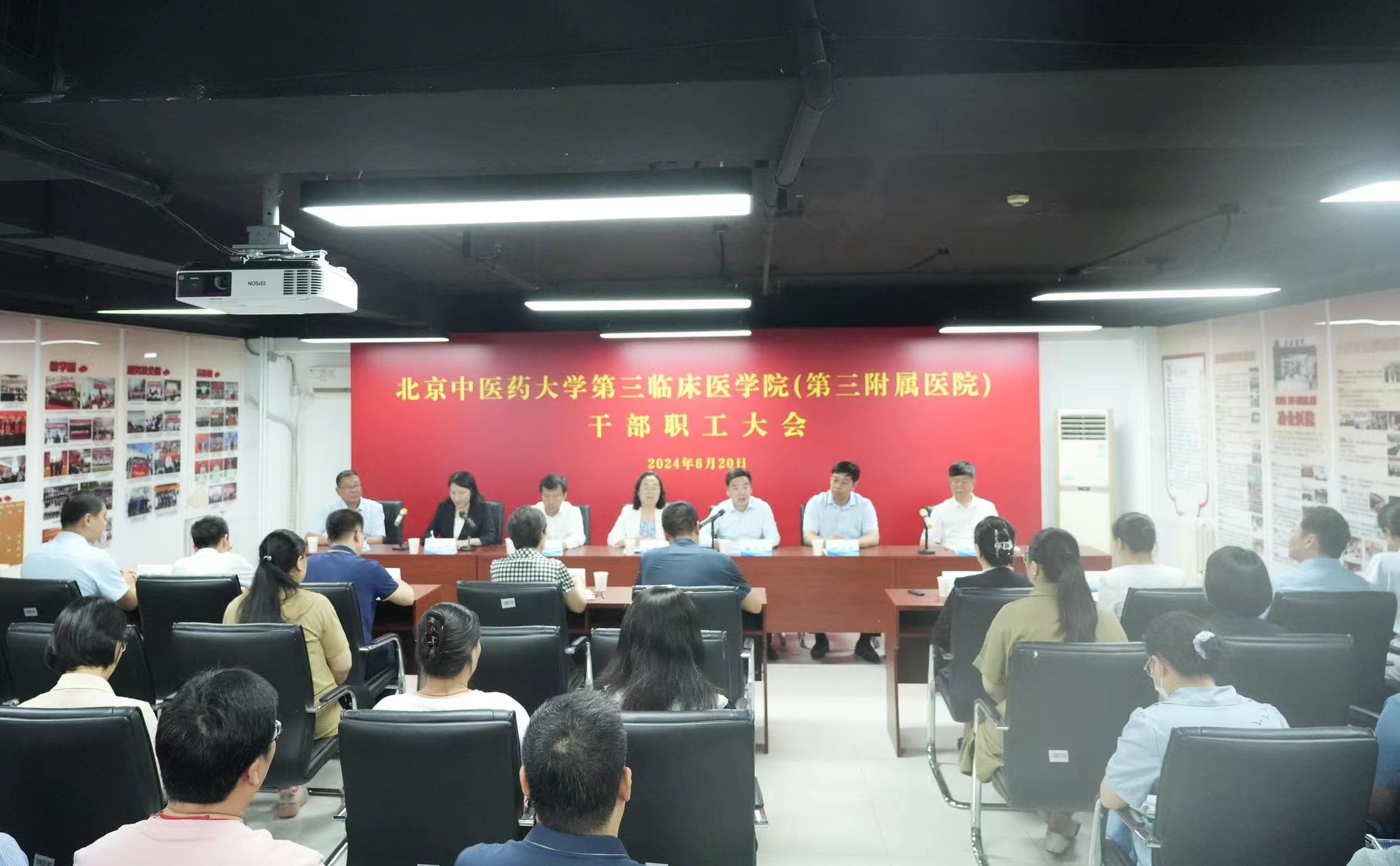 6月20日下午,北京中醫藥大學召開第三臨床醫學院(第三附屬醫院)干部任免宣布會。校黨委書記王瑤琪,校黨委副書記、校長唐志書,校黨委副書記汪慶華,校黨委副書記、紀委書記劉江平,校黨委組織部副部長祝成業,以及醫院領導班子成員、內設機構負責人、科室主任、護士長代表參加會議。會議由第三臨床醫學院(第三附屬醫院)黨委書記王家紅主持。
