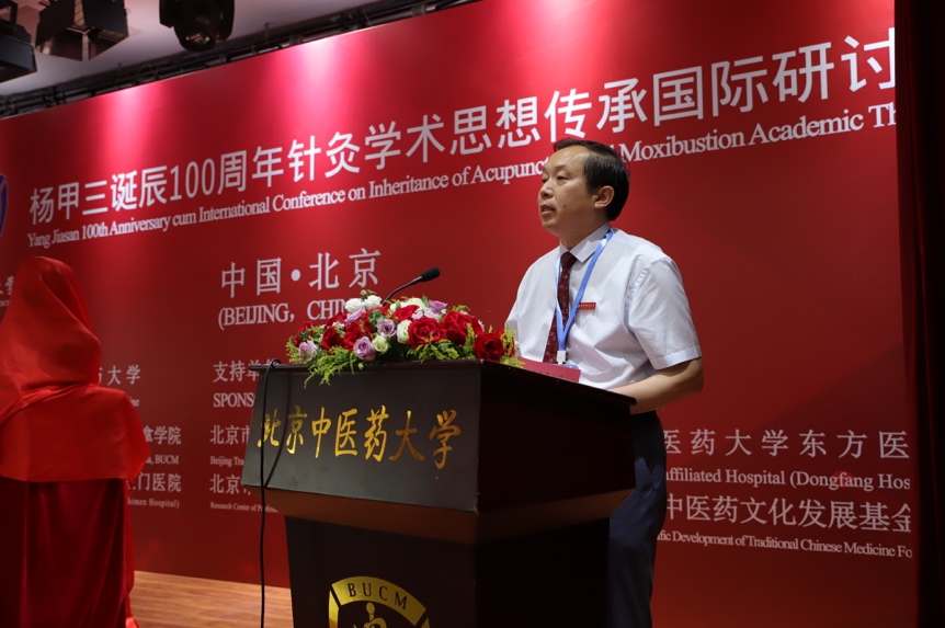 谷曉紅書記在致辭中說,楊甲三先生不僅是新中國針灸學學術界的突出代表,更是北京中醫藥大學針灸學學科的奠基者和領路人。他根植經典、嚴謹治學;精思善學、療效卓著;師古不泥、力求創新,在60多年的風雨兼程中,為針灸學科的理論研究、教材建設、師資培養、臨床醫療、科學實驗乃至教育教學等方面都做出了斐然的貢獻。谷書記表示,大家要深入學習領會楊老留下的寶貴精神財富。一是要學習楊老“矢志不渝、勤奮好學”的求學熱忱;二是要學習楊老“一絲不茍、嚴謹求真”的治學態度;三是要學習楊老“兼收并蓄、善思明辨”的創新精神;四是要學習楊老“關愛病患、精益求精”的大醫情懷;五是要學習楊老“一生奉獻,淡泊名利”的人生境界。