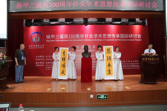 6月22日上午,楊甲三誕辰100周年針灸學術思想傳承國際研討會在我校和平街校區舉行。中國針灸學會會長世界針灸學會聯合會主席劉保延、北京針灸學會秘書長黃毅,我校黨委書記谷曉紅、校黨委副書記靳琦,針灸推拿學院黨委書記鄔繼紅、院長劉存志,附屬東直門醫院黨委書記葉永安,國家中醫藥管理局澄江學派研究室負責人、南京中醫藥大學張建斌,北京中醫醫院針灸科主任李彬,原東直門醫院針灸科主任趙吉平,我校臨床特聘專家郭廷英和名老專家張國瑞、耿恩廣、谷世喆、邊長宗、李曉明,1963級校友、香港執業中醫師謝章杰,以及楊甲三先生弟子代表、再傳弟子代表,國內外針灸界人士和學校師生代表300余人參加了大會。會議由靳琦副書記主持。