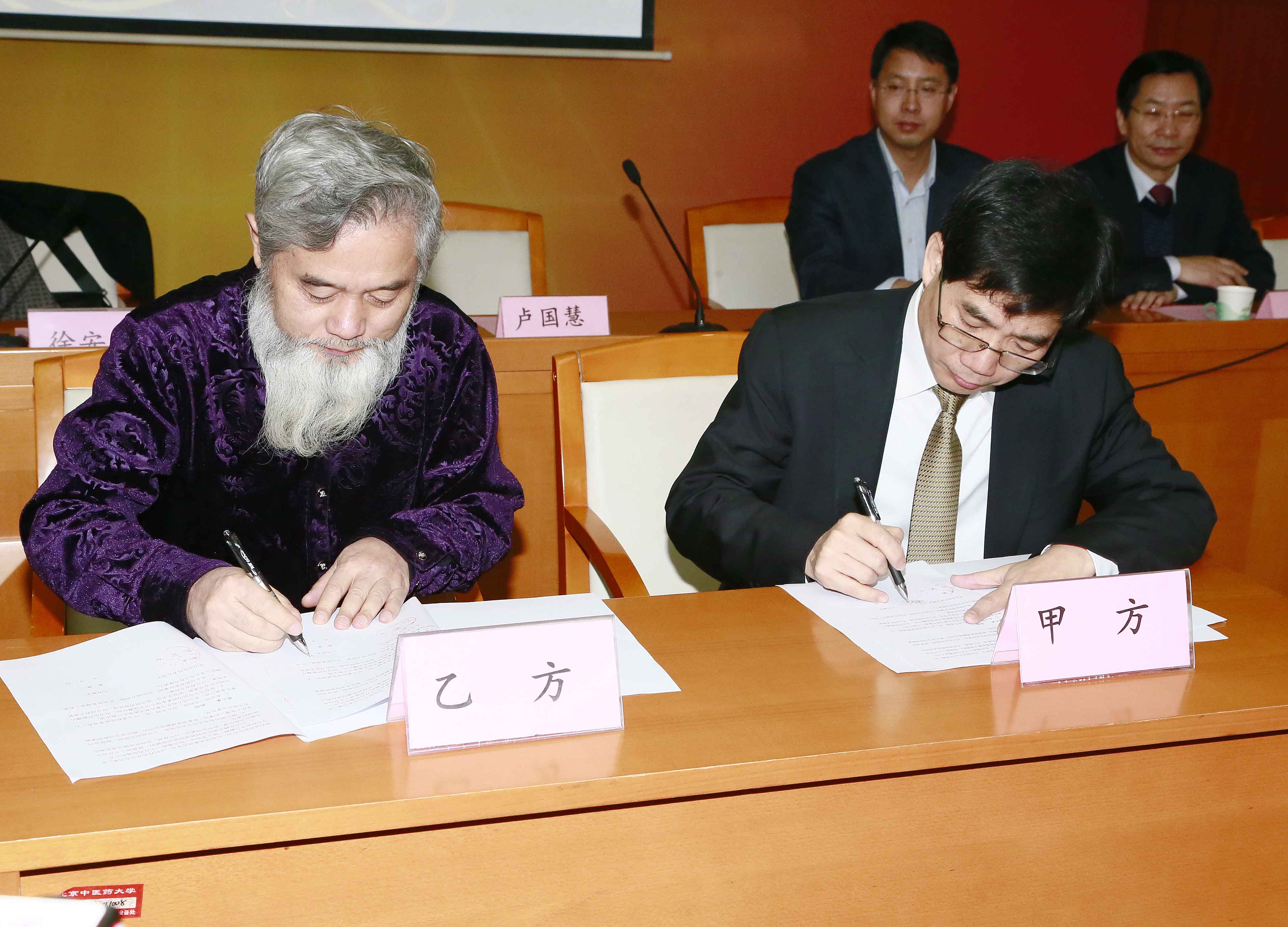 徐安龍校長向受聘專家頒發了聘書,并代表北京中醫藥大學與受聘專家代表薄智云、吳雄志、金觀源、壽小云、許躍遠分別在中醫臨床特聘專家聘任合同上簽字。