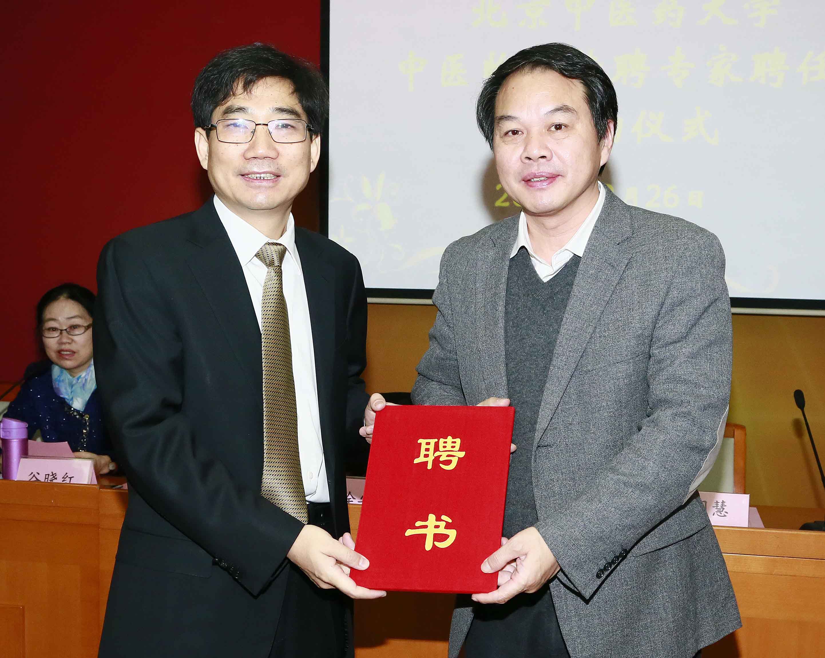 12月26日上午,北京中醫藥大學舉行中醫臨床特聘專家聘任儀式。出席聘任儀式的有,國家中醫藥管理局人事教育司司長盧國慧,北京市中醫管理局副局長禹震,北京中醫藥大學校長徐安龍,副校長谷曉紅,校長助理王耀獻、劉銅華。48名中醫臨床特聘專家、職能部門負責人、各學院及臨床醫學院領導和師生代表參加了聘任儀式。光明日報前總編、訪問學者敬天林也參加了聘任儀式。儀式由谷曉紅副校長主持。