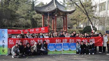 11月29日至12月5日,我校人文學(xué)院和黨委宣傳部共同舉辦了我校第八屆“12·4法制宣傳周”活動(dòng)。此次活動(dòng)的主題是“弘揚(yáng)法治精神,構(gòu)建和諧校園”,共設(shè)立普法講座、普法報(bào)紙發(fā)行、法律專業(yè)辯論賽、普法橫幅簽名、法律知識(shí)競(jìng)答、普法電影觀看六個(gè)單元。12月3日中午,普法橫幅簽名和法律知識(shí)現(xiàn)場(chǎng)競(jìng)答活動(dòng)在學(xué)校食堂前舉行。兩百余名同學(xué)積極參與了現(xiàn)場(chǎng)法律知識(shí)競(jìng)答活動(dòng),近千名師生在法制宣傳橫幅上簽名,活動(dòng)現(xiàn)場(chǎng)還發(fā)放了由法律系學(xué)生會(huì)編輯、印制的普法報(bào)紙《交叉點(diǎn)》100余份。活動(dòng)的順利開(kāi)展,實(shí)現(xiàn)了普及法律知識(shí)、提高學(xué)生法律意識(shí)的活動(dòng)目的,在校園內(nèi)營(yíng)造了濃厚的學(xué)法、守法、用法氛圍,獲得廣大師生的廣泛好評(píng)。