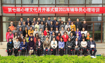 4月6日下午,我校“珍愛自我,感受幸福”第七屆心理文化月開幕式暨2011年輔導員心理培訓在逸夫館二層報告廳舉行。校黨委副書記谷曉紅,學工部、研究生院、團委相關部門領導及老師,各學院副書記及輔導員、班主任共80余人參加了活動。