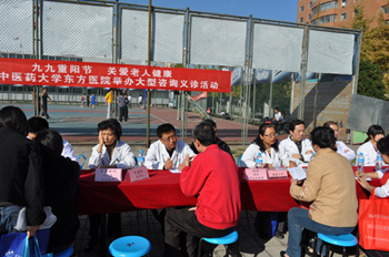 10月16日,重陽(yáng)節(jié)到來(lái)之際,我校東方醫(yī)院在方莊體育公園舉辦了“重陽(yáng)節(jié)關(guān)愛老人健康”義診活動(dòng)。東方醫(yī)院腦病科、心內(nèi)科、腎內(nèi)科、婦科、風(fēng)濕科、內(nèi)分泌科、治未病中心等15個(gè)重點(diǎn)科室專家和科室骨干進(jìn)行了義診、健康咨詢、教授養(yǎng)生保健操等活動(dòng),為老百姓送去了健康保健知識(shí),重陽(yáng)節(jié)的公園里洋溢著濃濃的敬老情。