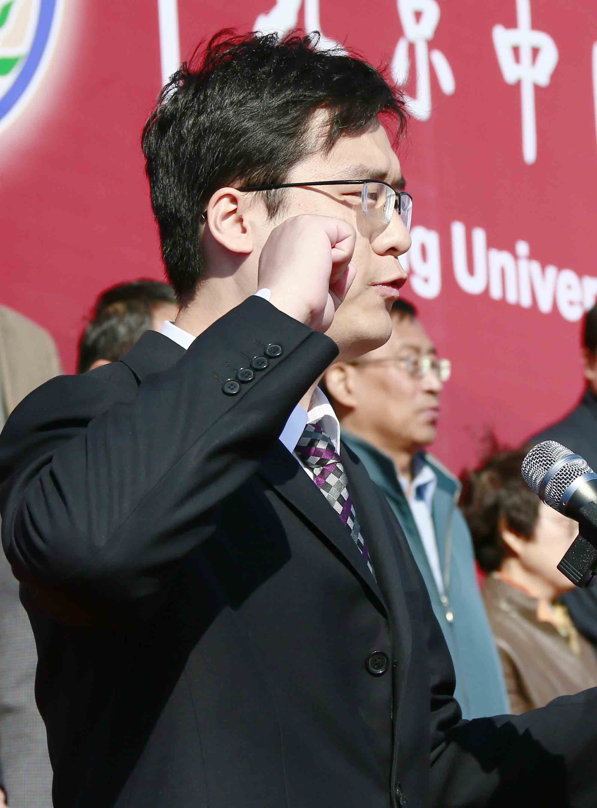 在校生代表中藥學(xué)院2013級中藥學(xué)專業(yè)閆海偉發(fā)言。他首先回顧了從初入校園到現(xiàn)在的生活學(xué)習(xí)歷程和心路歷程。隨后,他說,想要學(xué)有所成,就要付出艱辛與汗水,甘于寂寞,希望大家對自己有一個(gè)正確的定位。最后,他號召大家,挽起手共同為杏林之茂盛發(fā)奮圖強(qiáng),為岐黃之繁榮添磚加瓦!