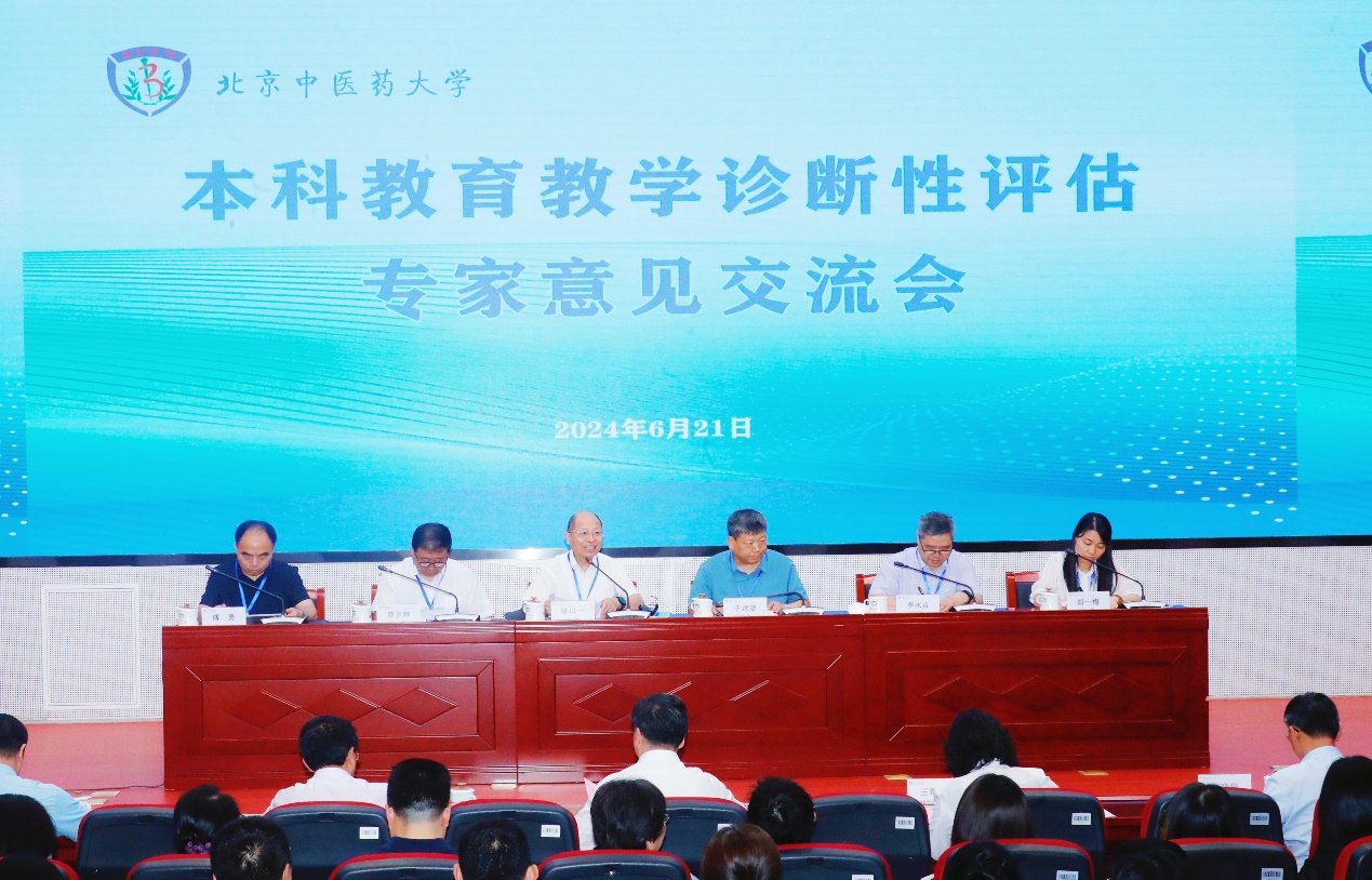 6月21日下午,北京中醫藥大學在良鄉校區召開本科教育教學診斷性評估專家意見交流會。專家組由同濟大學原常務副校長陳以一教授擔任組長,由北京化工大學副校長蘇海佳教授、陜西中醫藥大學黨委副書記于遠望教授擔任副組長,成員包括教育部中藥學專業教育指導委員會秘書長、黑龍江中醫藥大學原中藥學院院長李永吉教授,北京理工大學信息與電子學院黨委書記薛正輝教授,安徽大學教學評估處處長傅勇教授,成都中醫藥大學教務處處長胡一梅教授。專家組全體成員,全體校領導、校本部全體處級干部、教學督導專家、專業負責人,基層教學組織負責人、教學管理人員、教師代表等300余人參加會議。會議由專家組組長陳以一教授主持。