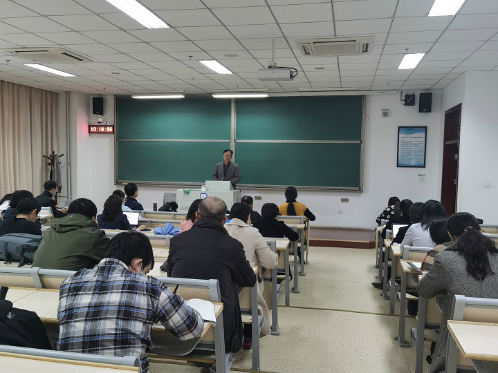 中醫(yī)學(xué)院黨委書記趙百孝為全院各教研室主任和支部書記宣講十九屆五中全會精神。
