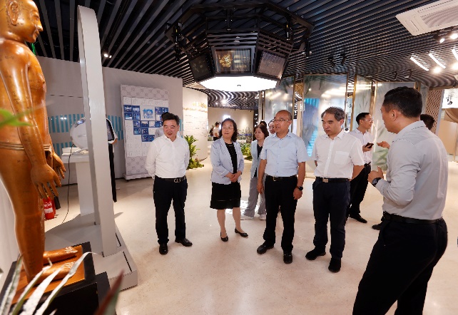 座談會前,于英杰書記一行實地察看了我校良鄉(xiāng)校區(qū)中醫(yī)基礎理論課程群綜合實訓平臺、臨床中藥學實訓中心、中藥DIY鑒別實訓中心,在“10秒”中醫(yī)藥體驗館察看“中醫(yī)藥+科技與中醫(yī)藥+國潮文化”設計理念和產(chǎn)品展示,了解中醫(yī)藥文化創(chuàng)造性轉(zhuǎn)化和創(chuàng)新性發(fā)展情況。
