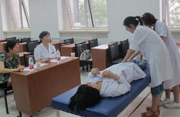 競(jìng)賽由“綜合技能操作競(jìng)賽”(含舌診、脈診、針灸點(diǎn)穴、心肺復(fù)蘇、心電圖)、“中醫(yī)內(nèi)科臨床思維能力競(jìng)賽”和“醫(yī)患溝通能力競(jìng)賽”組成。共有33名同學(xué)參賽。中日友好醫(yī)院、北京同仁醫(yī)院、護(hù)國(guó)寺中醫(yī)院、東直門(mén)醫(yī)院等知名專家組成評(píng)委團(tuán),