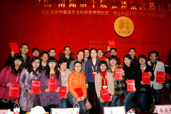 張仲景獎(jiǎng)學(xué)金助學(xué)金是國(guó)家中醫(yī)藥管理局和宛西制藥發(fā)起的公益活動(dòng)。為助力培育我國(guó)中醫(yī)藥事業(yè)優(yōu)秀人才,實(shí)現(xiàn)中醫(yī)藥事業(yè)的可持續(xù)發(fā)展,宛西制藥于2007年起,出資500萬元,與北京中醫(yī)藥大學(xué)、上海中醫(yī)藥大學(xué)等十所國(guó)內(nèi)知名中醫(yī)藥院校簽約,承諾五年內(nèi)培養(yǎng)1000名中醫(yī)藥博士、碩士。至今已舉辦五屆,我校共有100名研究生獲得該獎(jiǎng)學(xué)助學(xué)金。