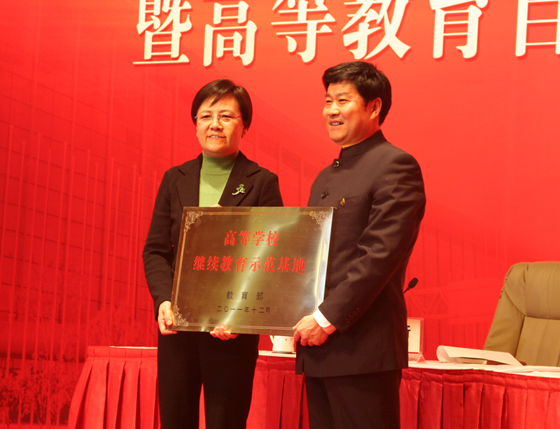 近日,在全國繼續教育工作會議暨高等教育自學考試制度建立30周年紀念大會上,我校被評為教育部第一批50所繼續教育示范基地建設高校之一,并擔任醫學院校組組長單位。高思華校長參加了會議,教育部副部長魯昕為我校授牌。會議期間劉延東同志發表了重要講話。