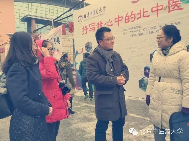 11月25日中午,“抒寫我心中的北中醫”活動在和平街校區拉開帷幕,活動吸引了眾多師生現場參與,用各種方式述說出心中的北中醫形象,現場的熱烈氣氛驅走了雪后的寒冷,寫滿了青春和活力文字的背景板在冬日的校園里熠熠生輝。
