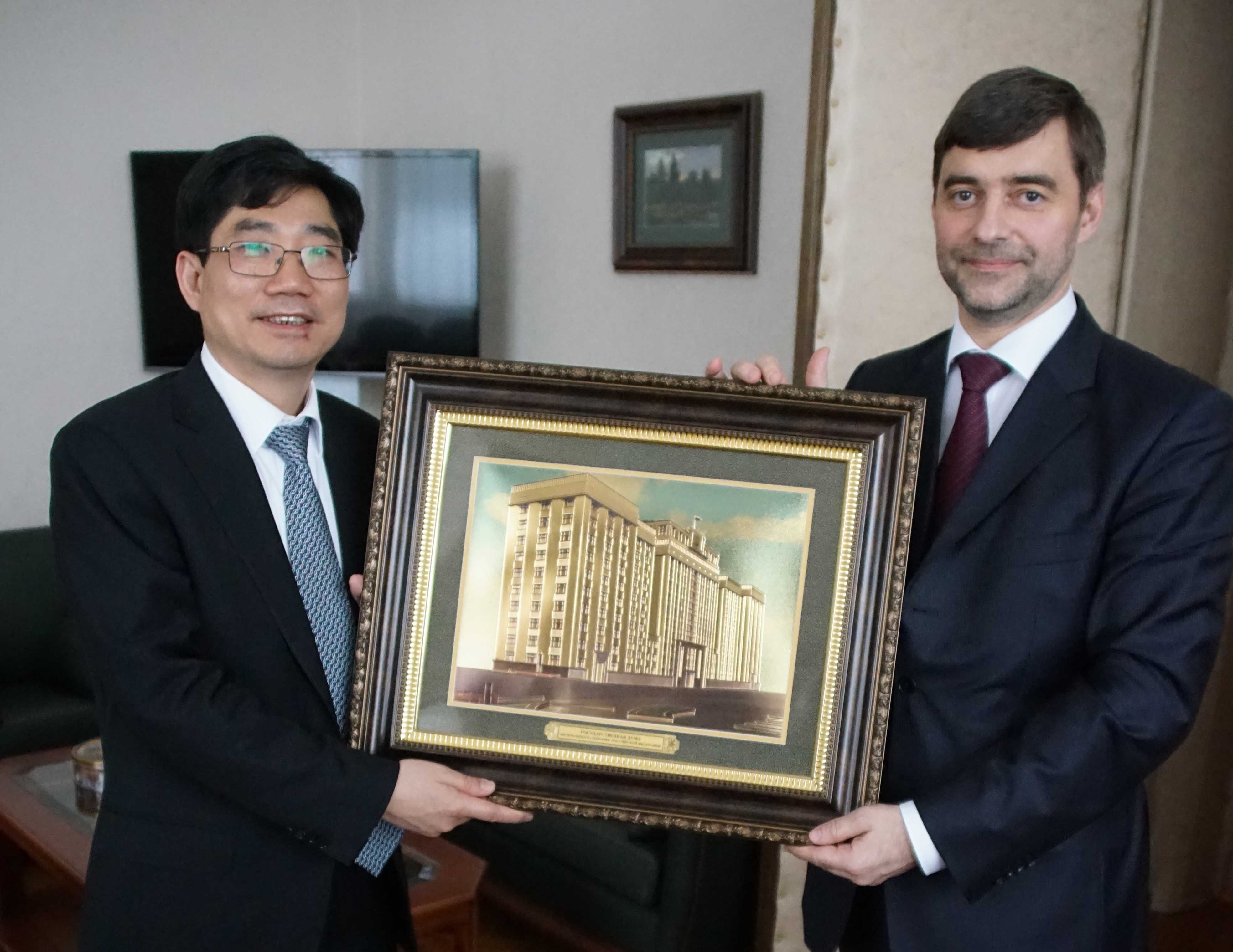 在俄聯(lián)邦杜馬議會(huì)大廈,應(yīng)謝爾蓋·熱列茲尼亞克副主席的邀請(qǐng),徐校長(zhǎng)作了題為“讓中醫(yī)藥造福俄羅斯人民”的報(bào)告,就中醫(yī)區(qū)別于西醫(yī)的特性、在國際上的發(fā)展現(xiàn)狀以及北中醫(yī)的歷史做了簡(jiǎn)要介紹,強(qiáng)調(diào)了中醫(yī)的預(yù)防理念對(duì)未來醫(yī)學(xué)發(fā)展、社會(huì)經(jīng)濟(jì)發(fā)展的重要影響力,深刻分析了中醫(yī)海外立法的艱難。同時(shí)表示,作為世界中醫(yī)最高學(xué)府,北中醫(yī)將為俄羅斯民眾帶來最優(yōu)質(zhì)的醫(yī)療資源、最標(biāo)準(zhǔn)的中醫(yī)臨床與教育體系,并與俄方一同突破法律與科研方面的障礙。聽完徐校長(zhǎng)的報(bào)告,謝爾蓋·熱列茲尼亞克副主席高度評(píng)價(jià)中醫(yī)在疾病預(yù)防與康復(fù)方面的巨大優(yōu)勢(shì),希望學(xué)習(xí)中國經(jīng)驗(yàn),在我校幫助下,共同構(gòu)架俄羅斯中西醫(yī)并存醫(yī)療體系,實(shí)質(zhì)探討中醫(yī)在俄立法和正規(guī)醫(yī)療、教育體系的建立。