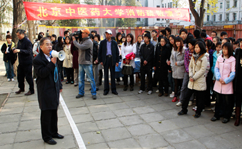 11月9日中午,保衛(wèi)處在西校區(qū)學(xué)六公寓舉行了消防疏散演習(xí)活動(dòng)。副校長(zhǎng)徐孝、保衛(wèi)處處長(zhǎng)呼永安、學(xué)工部部長(zhǎng)郭輝及相關(guān)部門(mén)負(fù)責(zé)人員和學(xué)生參加了演習(xí)。當(dāng)疏散警報(bào)響起,彩色煙霧彈升起后,各宿舍學(xué)生按照宿管員和班主任的引導(dǎo)路線(xiàn),以最快的速度有序地撤離宿舍樓向指定地點(diǎn)集中。隨后同學(xué)們?cè)诒Pl(wèi)處副處長(zhǎng)齊兵役的指導(dǎo)下,現(xiàn)場(chǎng)演練滅火器和水龍帶的使用方法。