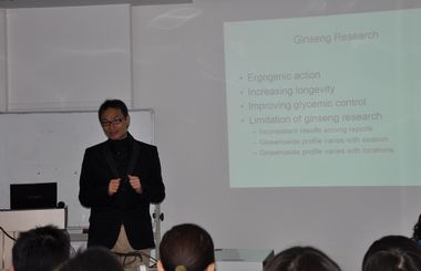 4月6日,臺(tái)北體育學(xué)院運(yùn)動(dòng)科學(xué)研究所所長(zhǎng)郭家驊教授到我校中藥學(xué)院進(jìn)行學(xué)術(shù)交流。郭家驊教授作了以《Effects of gensenosides Rg1 and Rb1 in the regulation of carbohydrate metabolism(人參皂苷Rg1和Rb1在糖代謝中的作用)》為題的報(bào)告。報(bào)告結(jié)束后,我校副校長(zhǎng)喬延江、中藥學(xué)院副院長(zhǎng)石任兵與郭教授就兩岸聯(lián)合辦學(xué)、合作研究等問題進(jìn)行了會(huì)談。郭教授還參觀了我校中醫(yī)藥博物館。他對(duì)前來我校參觀交流感到非常榮幸,并期盼與我校進(jìn)行更深度的合作交流。