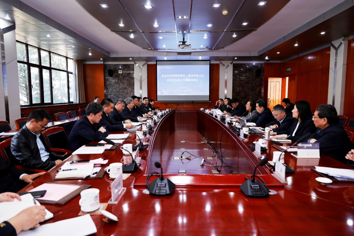 3月28日下午,北京市中醫(yī)藥管理局黨組書(shū)記、局長(zhǎng)羅增剛,密云區(qū)區(qū)委書(shū)記余衛(wèi)國(guó),區(qū)委副書(shū)記、區(qū)長(zhǎng)于海波,副區(qū)長(zhǎng)宋語(yǔ)健一行來(lái)我校座談交流,共商校地合作共建發(fā)展。我校黨委書(shū)記王瑤琪,校長(zhǎng)唐志書(shū),副書(shū)記、紀(jì)委書(shū)記劉江平,副校長(zhǎng)劉存志和學(xué)校相關(guān)部門(mén)、第三附屬醫(yī)院負(fù)責(zé)人參加。