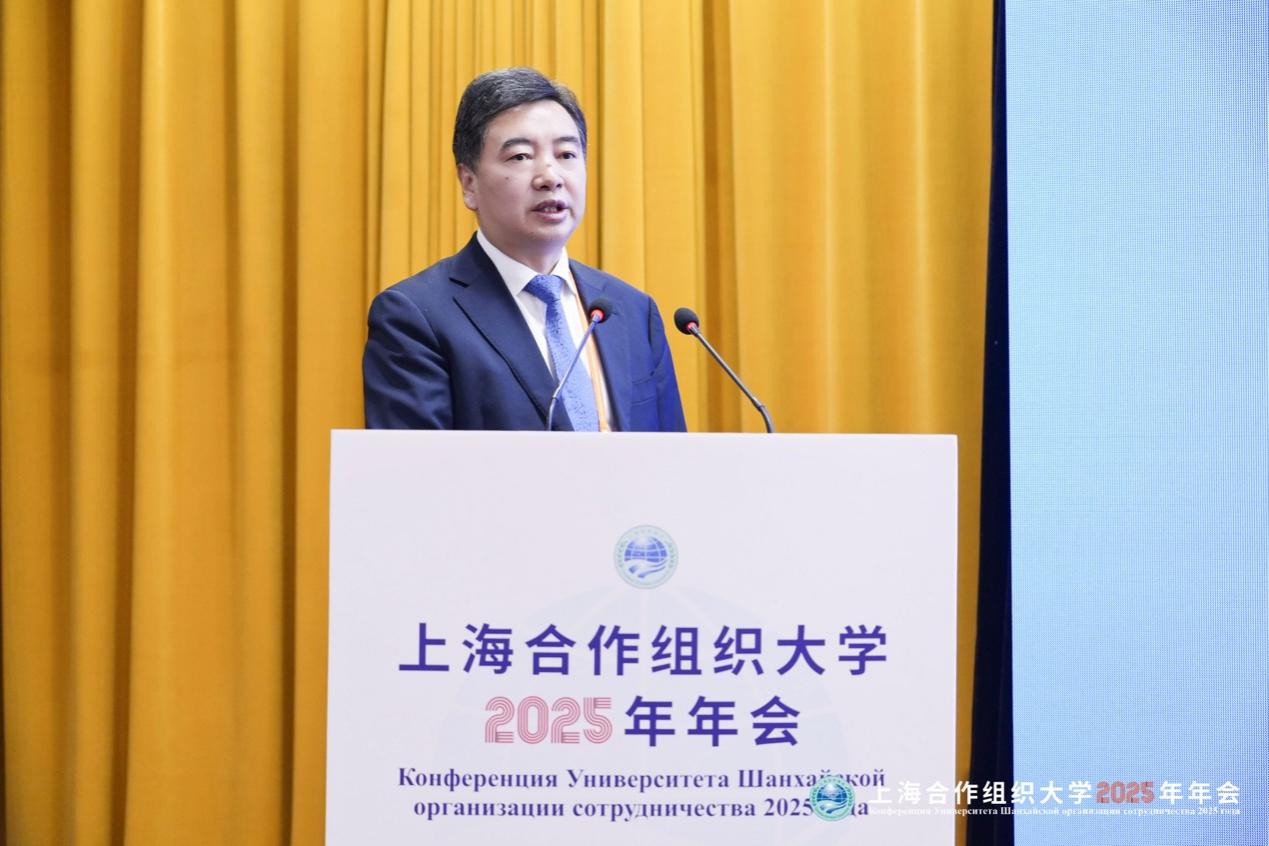 我國教育部部長懷進鵬、上海合作組織副秘書長詹內什·凱恩出席上海合作組織大學2025年年會開幕式并致辭。中國、俄羅斯、哈薩克斯坦、吉爾吉斯斯坦、塔吉克斯坦等5國教育部部長、86所中外院校校領導及教育界同仁齊聚一堂,共商上合組織框架下的教育合作大計。
