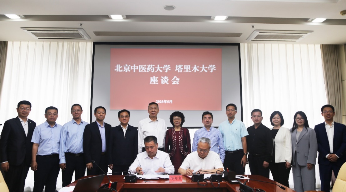會議期間,塔里木大學與我校召開座談交流會,并簽署了對口支持塔里木大學戰略合作協議,著眼發揮我校教育、科技、人才等資源優勢,幫扶塔里木大學助力中醫藥人才培養、學科科研、師資隊伍等建設,為振興中西部高等教育貢獻北中醫智慧和力量。