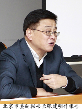 張建明秘書長的報告包括為什么要特別強調加強黨的建設、黨的建設的主要任務和要求、北京市基層黨建工作、加強高校基層黨建工作的緊迫性和重要性等四個部分。他指出,加強黨的領導是實現中華民族偉大復興的需要,是建設中國特色社會主義政治體制的需要,是應對國際復雜形勢的需要,是解決黨內存在的突出問題的需要。關于新時期黨的建設面臨的主要任務和主要要求,他提出:首先要建設馬克思主義學習型政黨,努力提高執政水平;其次要堅持和完善民主集中制,發展黨內民主;第三,要進一步深化干部人事制度改革,建設一支能夠推動社會主義建設,促進社會和諧的高素質干部隊伍;第四,要抓好基層黨組織建設,為黨的建設夯實基礎;第五,要堅持弘揚黨的優良傳統,密切黨群關系、干群關系。他認為,北京市黨建工作特別是基層黨建工作總體上符合北京城市發展的需要,促進了首都的發展與穩定。主要體現在:黨員干部思想統一,首都發展定位清晰、準確,各級黨組織堅強有力,在各項重大活動中,基層黨組織的戰斗堡壘作用發揮明顯。關于加強普通高等學校黨建工作的問題,他強調,高校中高級知識分子集中的特性凸顯了高校黨建工作的重要性;高校黨建工作在加強科學化、制度化、民主化建設的同時,還要結合高校的發展、科學技術的創新,加強高校黨建的創新性嘗試。