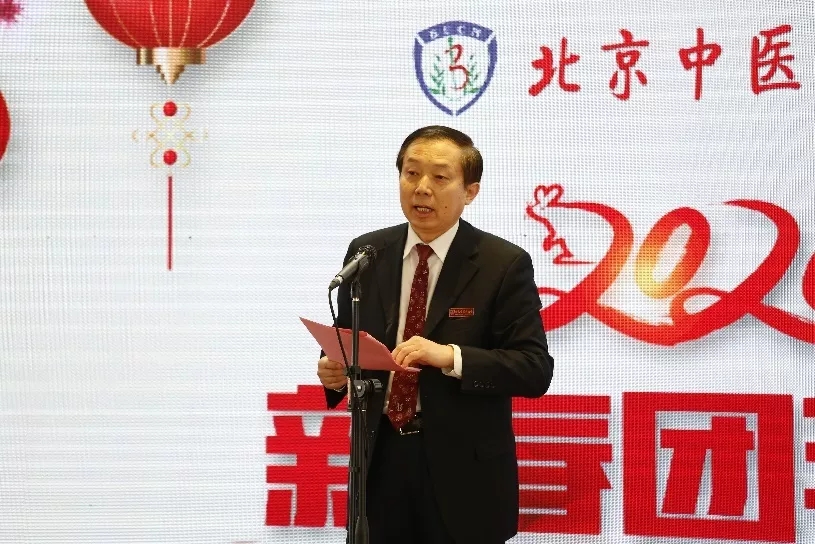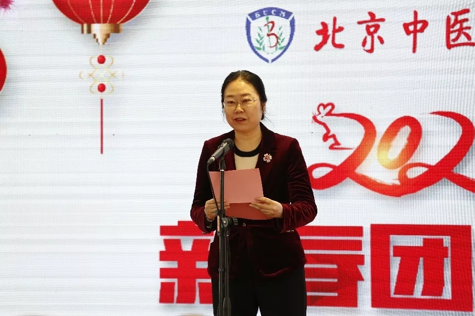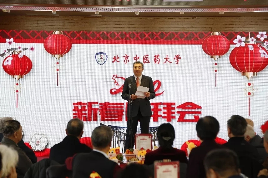 團拜會上,校黨委書記谷曉紅代表學校發表新春賀詞,向出席團拜會的各位來賓,向辛勤耕耘在教育、科研、醫療、管理、服務一線的全體教職員工,向心懷夢想、勤學上進的廣大同學們,向關心學校建設和發展的離退休老領導、老同志,向關注支持北中醫發展的海內外校友及社會各界朋友致以誠摯的問候和衷心的感謝。