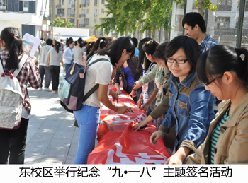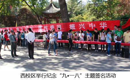 當天中午,全校師生在我校東、西兩校區參與了由校學生會、研究生會聯合倡議的 “勿忘國恥,捍衛主權,理性愛國,振興中華”主題簽名活動。在今天的日子,是比較的特殊,勿忘國恥,牢記教訓。”2011級法學王仲杰說:“想要愛國,必須使國家強大起來。現在,認真的做好自己手上的工作,在國家需要我們的時候,可以盡自己一份力量。”