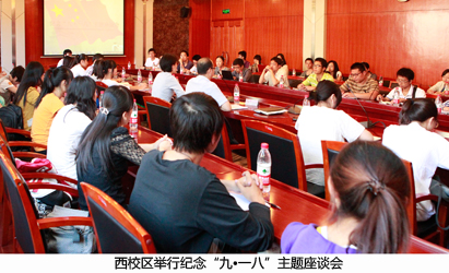 下午2點,我校五十余名學生代表參加了紀念“九·一八”主題座談會。會上,學生代表們紛紛發言,就“九·一八”事變及釣魚島事件等進行了深入的討論,從不同的視角闡述了對歷史、政治、文化,對“愛國”、“發展”和“民主”的全面解讀,并達成了一致共識:釣魚島事件是日本政府對中國主權的嚴重侵犯,其行徑應受到強烈譴責,我們要堅決捍衛國家主權;反思“九·一八”,勿忘國恥,作為青年學生應理性愛國,正視責任;青年是國家的未來,我們要從自身做起,立足本職,努力學習,提高素質,全面發展。其間,校學生會通過人人網對座談會進行實況發布。