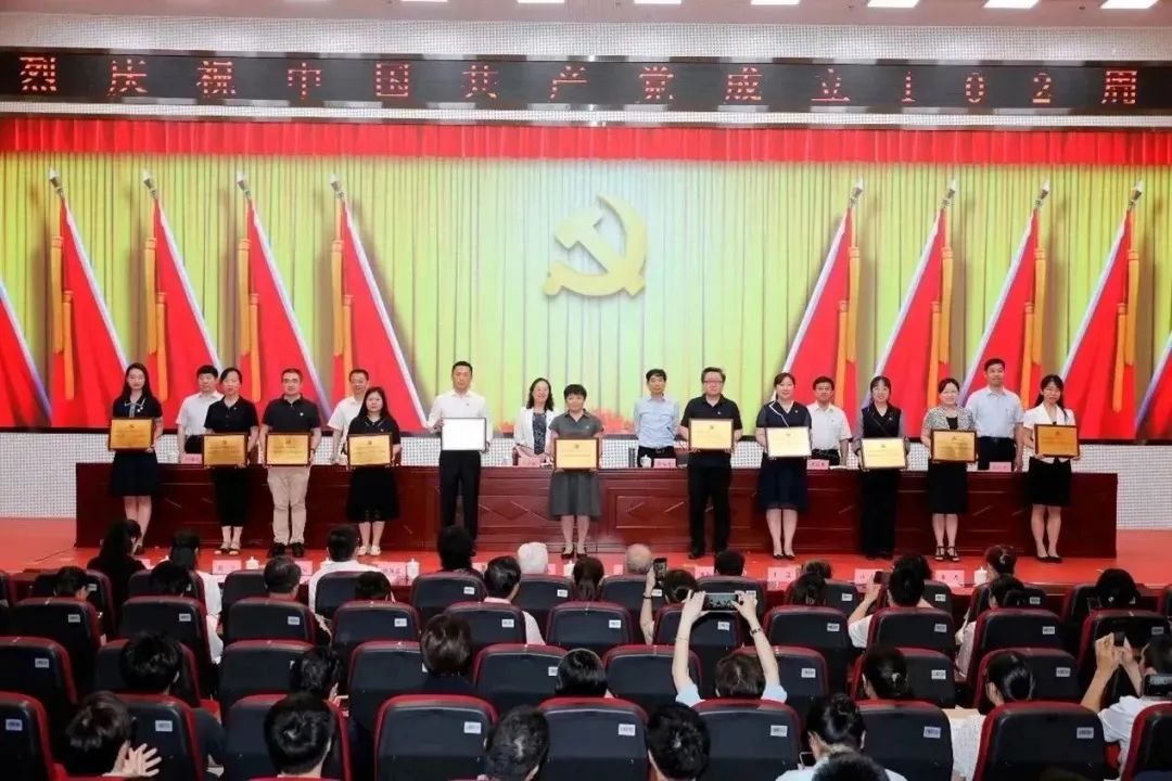 校領(lǐng)導(dǎo)為受到表彰的優(yōu)秀共產(chǎn)黨員代表、優(yōu)秀黨務(wù)工作者代表和先進(jìn)基層黨組織代表頒發(fā)獎(jiǎng)杯、獎(jiǎng)牌和證書。