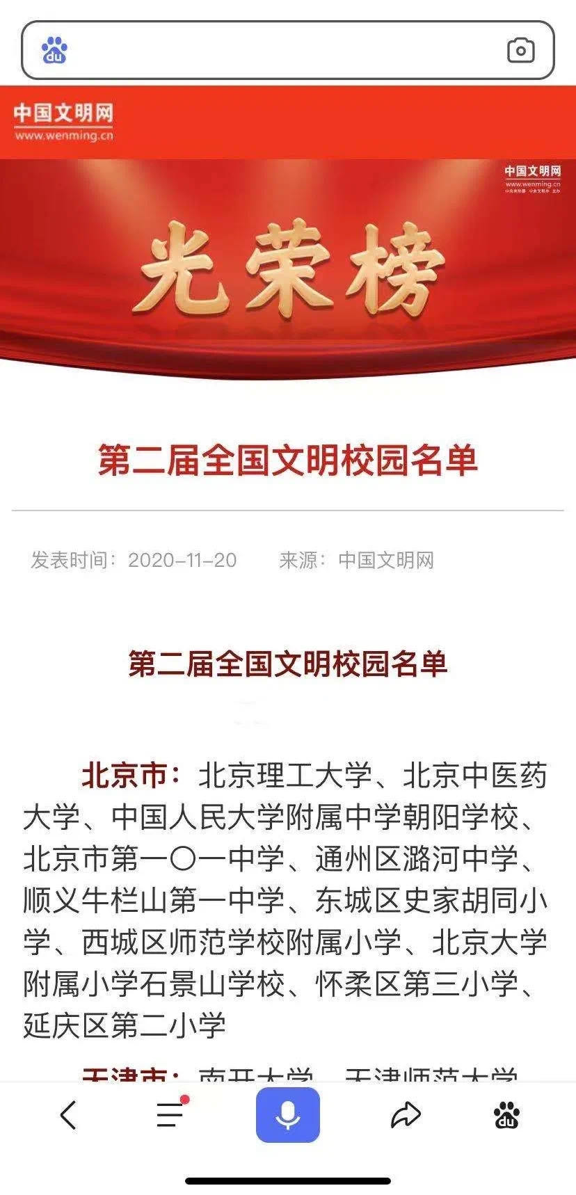 11月20日,據中央文明委發(fā)布消息,北京中醫(yī)藥大學獲第二屆“全國文明校園”榮譽稱號,成為兩所獲此殊榮的北京高校之一。