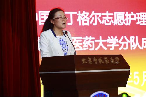 5月23日,2016年北京中醫藥大學國際護士節慶祝活動暨南丁格爾志愿護理服務分隊成立儀式隆重舉行。南丁格爾獎章獲得者、中國南丁格爾志愿護理服務總隊理事長王雅屏、副理事長陳東、副理事長兼秘書長張利巖,我校副校長翟雙慶,我校校長助理、研究生院常務副院長劉銅華,北京市中醫藥管理局醫政處調研員祝靜,團中央學校部全國學聯辦公室副主任張巧云,朝陽區青年志愿者協會副秘書長孟媛媛,10家臨床醫院護理部主任及臨床教師代表以及學校各職能部門、各學院負責人、往屆優秀畢業生及學院師生參加了此次活動。