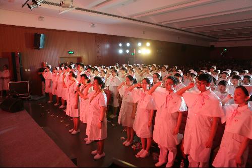 莊嚴而隆重的授帽儀式上,第38屆南丁格爾獎獲得者王雅屏、第39屆南丁格爾獲得者陳東、第43屆南丁格爾獲得者張利巖及護理學院郝玉芳院長為2013級本科班、涉外班、2014級高職班的40名優秀學生代表授帽,學生們在燭光和誓言中接受了這份榮光和職業精神的洗禮。
