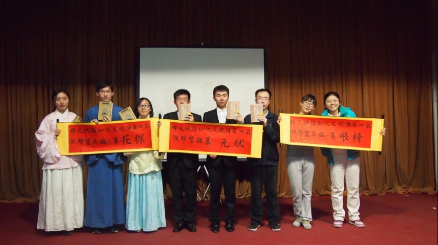 閉幕式后,備受矚目的第四屆傳統文化知識“狀元榜”決賽隆重舉行。該活動由基礎醫學院團總支承辦,各學院組隊參加,是我校頗具影響力的文化競賽活動。經過兩輪的嚴格考核,共8支代表隊入圍當天的殿試決賽。現場特邀敬天林、趙百孝、王梅紅、梁永宣、李良
