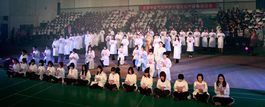 開幕式分為表演及經典誦讀比賽兩大部分。表演包括琴、棋、書、畫、吟五個環節,最后以全場齊誦《大醫精誠》結束。節目豐富緊湊、意蘊深刻,在充滿青春活力的氣氛中展現了我校將傳統文化精髓與時代特征相結合的特色校園文化。表演結束后,由管理學院團總支承辦的經典誦讀比賽拉開帷幕。來自各學院的八支代表隊認真準備,精心設計,以飽滿的精神和多樣的形式獻上了精彩的誦讀表演,使經典誦讀比賽呈現出新的活力。