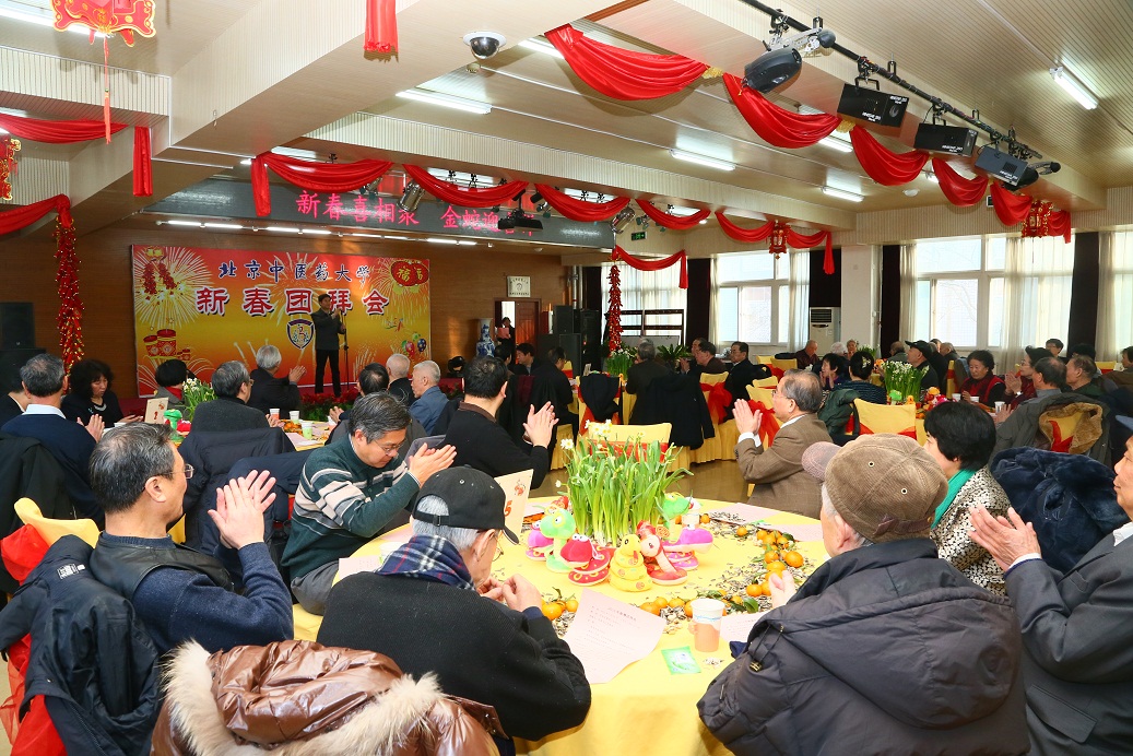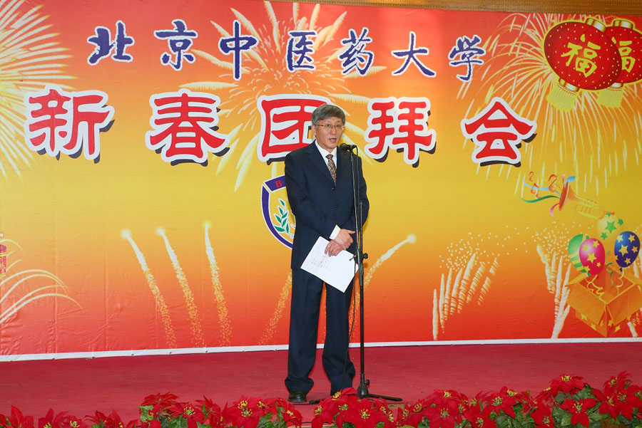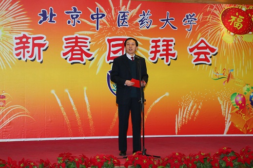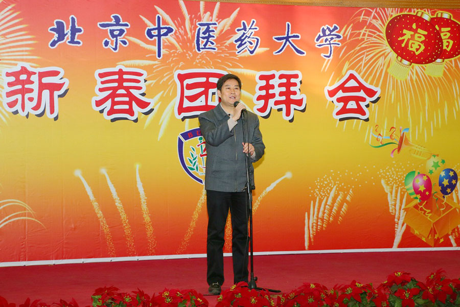 團拜會由吳建偉書記主持。高思華校長首先發表了熱情洋溢的新春致辭。高校長在致辭中總結道,2012年是學校各項事業快速發展的一年,是全校師生齊心奮斗的一年,也是北中醫大家庭空前繁榮的一年。過去的一年,學校倍受上級領導的重視和關懷,社會影響力得到了極大的提高,劉云山同志親筆為我校批示:“中醫藥大學治學嚴謹,樹人為本,校風優良,辦學經驗可貴”;劉延東同志親臨我校視察指導工作并發表重要講話;中央級各大媒體對我校集中報道;我校的辦學成就、辦學經驗和辦學特色,得到充分肯定、集中展現和大力弘揚。一年中,學校的人才培養模式再度創新,首次實行了