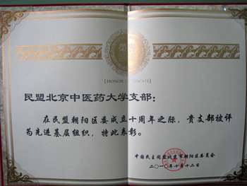 10月中旬,民盟朝陽區委成立十周年慶祝大會在朝陽賓館隆重召開。北京市人民政府副市長程紅,北京市政協副主席、民盟北京市委主委葛劍平,民盟中央副秘書長、組織部部長陳幼平,朝陽區政協主席辛燕琴,民盟北京市委專職副主委劉玉芳、李德勝等領導以及各區、工委黨派負責人到會祝賀并宣讀了賀詞。我校支部7位盟員參加了會議。會上,民盟朝陽區委對12個先進基層組織和39名優秀盟員、16名優秀老盟員進行了表彰。我校民盟支部榮獲先進支部稱號,方廷鈺、衛民、朱文濤及劉玉梅榮獲優秀盟員稱號。