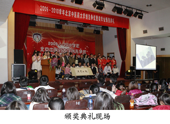 校黨委副書記谷曉紅宣讀了北京中醫(yī)藥大學《關于表彰2009—2010年度學生先進集體和先進個人的決定》,全校共有15個班級獲得了市級、校級先進班集體稱號,有1092人次分別獲得國家獎學金、校級人民獎學金、校級三好學生等榮譽稱號。谷書記在致辭中說,每一位站在領獎臺上的北中醫(yī)學子,都是引領在校大學生言行的榜樣,希望獎學金獲獎者繼續(xù)崇尚科學精神,發(fā)揚勤奮進取、胸懷大志、腳踏實地的作風;獲得先進班集體的班級要再接再厲,為在校園中形成崇尚先進、創(chuàng)先爭優(yōu)的良好風氣做出新的貢獻。谷書記對老師們提出兩點希望:繼續(xù)用無私奉獻的職業(yè)精神,點亮每一位學生的心靈;繼續(xù)探索各級各專業(yè)的教育特點,探索學生的學習生活需求,給予學生人文關懷和思維啟迪。