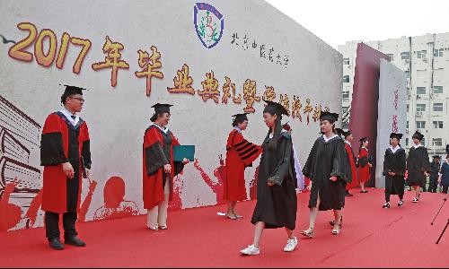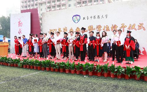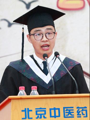 教師代表、中醫學院教授陳家旭向2017屆全體畢業生表達了熱烈祝賀和衷心祝福。他說,醫學道路之所以艱辛,是因為我們服務的對象是生命和健康。醫乃仁術,人命至貴,醫學之道,大醫精誠,“精”于高超的醫術,“誠”于高尚的品德。為醫者,當秉承一顆仁愛之心,救死扶傷,不辭辛苦,不慕得失。請同學們銘記學醫初心,恪守醫學之道,將過往的生命中收獲的全部的愛和支撐,轉化為“救死扶傷、治病救人”的責任。醫學為“至精至微之事”,必將付出終身的努力。希望同學們能夠堅守自己內心的信念,秉承北中醫人強烈的社會責任感,努力踐行崇仁、厚道、恒志、精術的仲景精神。
